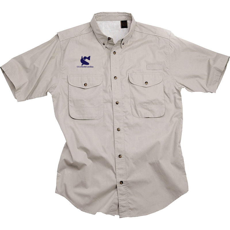 • Our popular poplin fishing shirt with the CCA North Carolina logo embroidered on right chest.